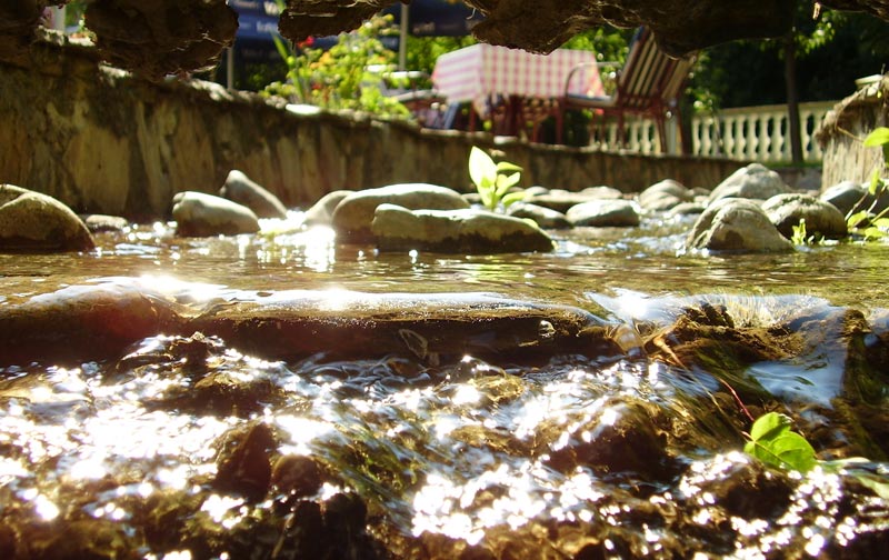 U objektu restorana sadržana je i letnja bašta, sa malom rečicom i vodopadom unutar nje, kao i pokrivenom binom za izvođenje raznih programa.
